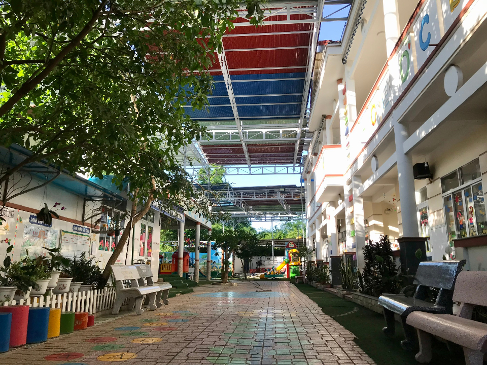Trường mầm non Bảo Châu có khuôn viên rộng rãi, thoáng đãng phù hợp cho các hoạt động ngoài trời.